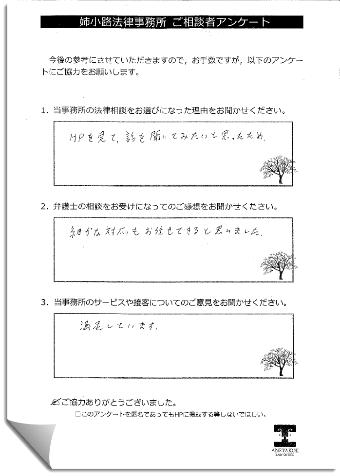 1.当事務所の法律相談をお選びになった理由をお聞かせください。