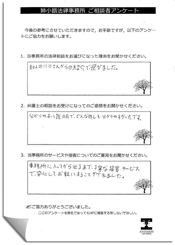 1.当事務所の法律相談をお選びになった理由をお聞かせください。